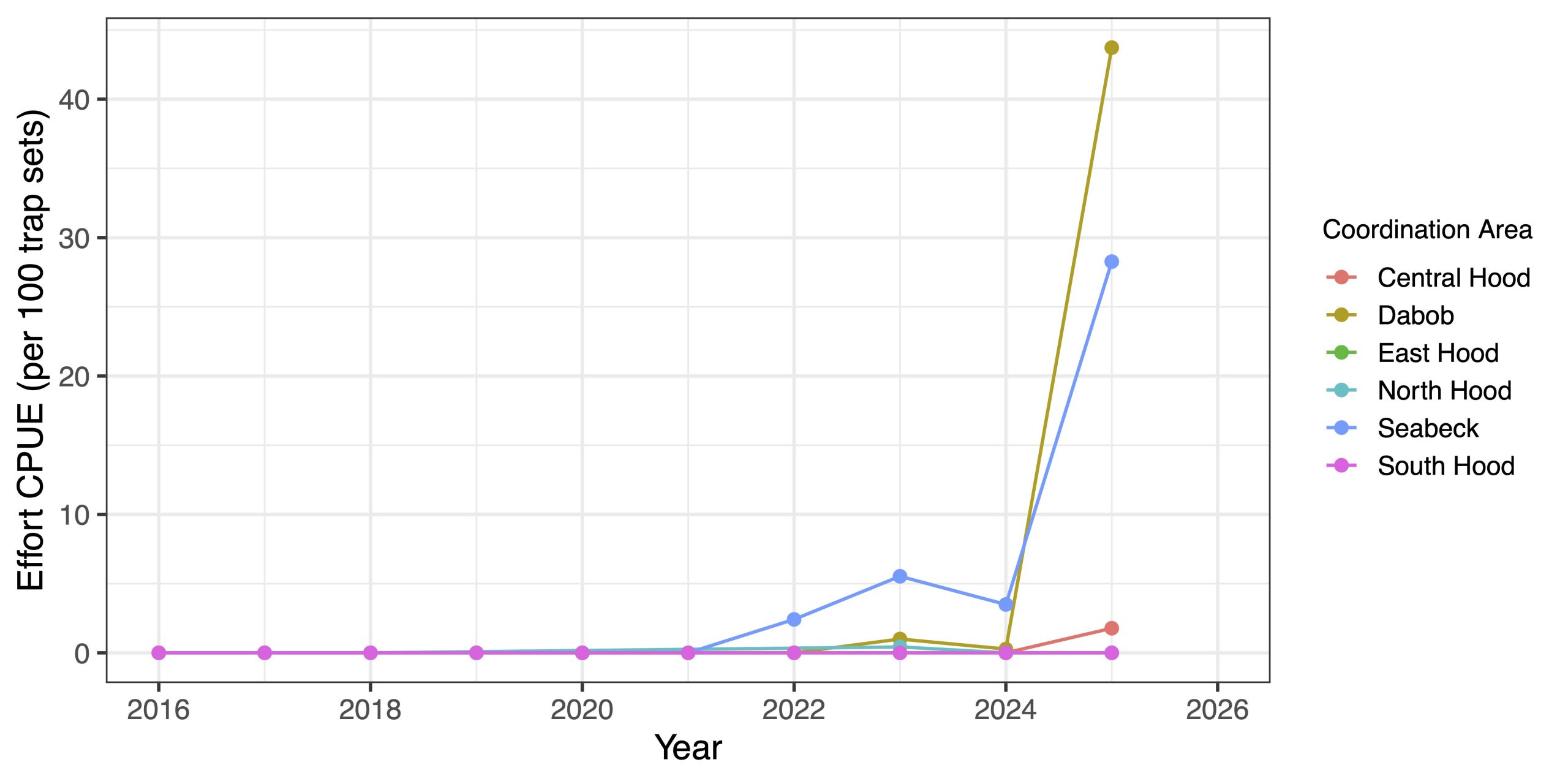 - In Discovery Bay, sustained high trapping effort resulted in catch rates comparable to those observed in 2024.