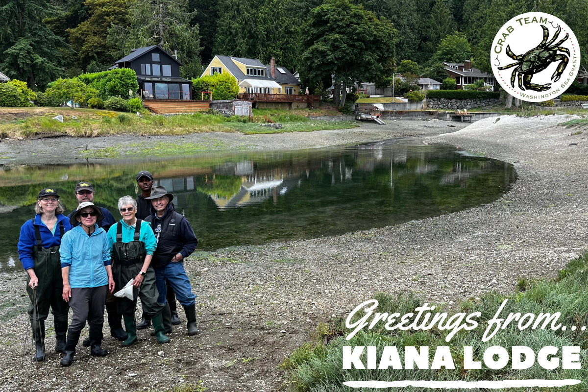 Just beyond the stunning wedding venue Kiana Lodge is a small lagoon frequented by otters and herons and, twice a month, a team of dedicated Crab Teamers, too. The property was purchased by Port Madison Enterprises (Suquamish Tribe) in 2004 on shorelines that have fed the Suquamish for innumerable generations. Gratitude to the Suquamish Tribe for permitting them to monitor such a unique and beautiful site is the first thing Kiana Lodge Crab Teamers mention when describing their experience.
