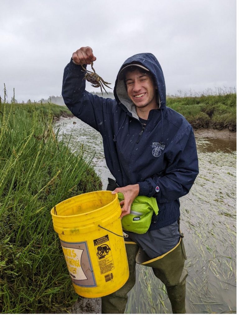Zachary Levitan is Washington Sea Grant’s (WSG) first Community Engaged Intern (CEI). During his ten-week summer internship, Zachary is working on coastal research projects affiliated with WSG with an emphasis on the European green crab. Originally from the Bay Area, Zachary came to Washington state to pursue his education at Whitman College in Walla Walla. He is in the process of completing a “3-2” program where he just finished three years at Whitman studying geology and will now transfer to the University of Washington to complete his program studying oceanography and anthropology over the next two years. So far, Zachary’s favorite part of his internship has been conducting fieldwork in the sloughs and mud to search for green crabs. As a first-generation college student learning how to navigate STEM fields, Zachary is looking forward to the mentorship structure provided by the CEI network and the staff at WSG.